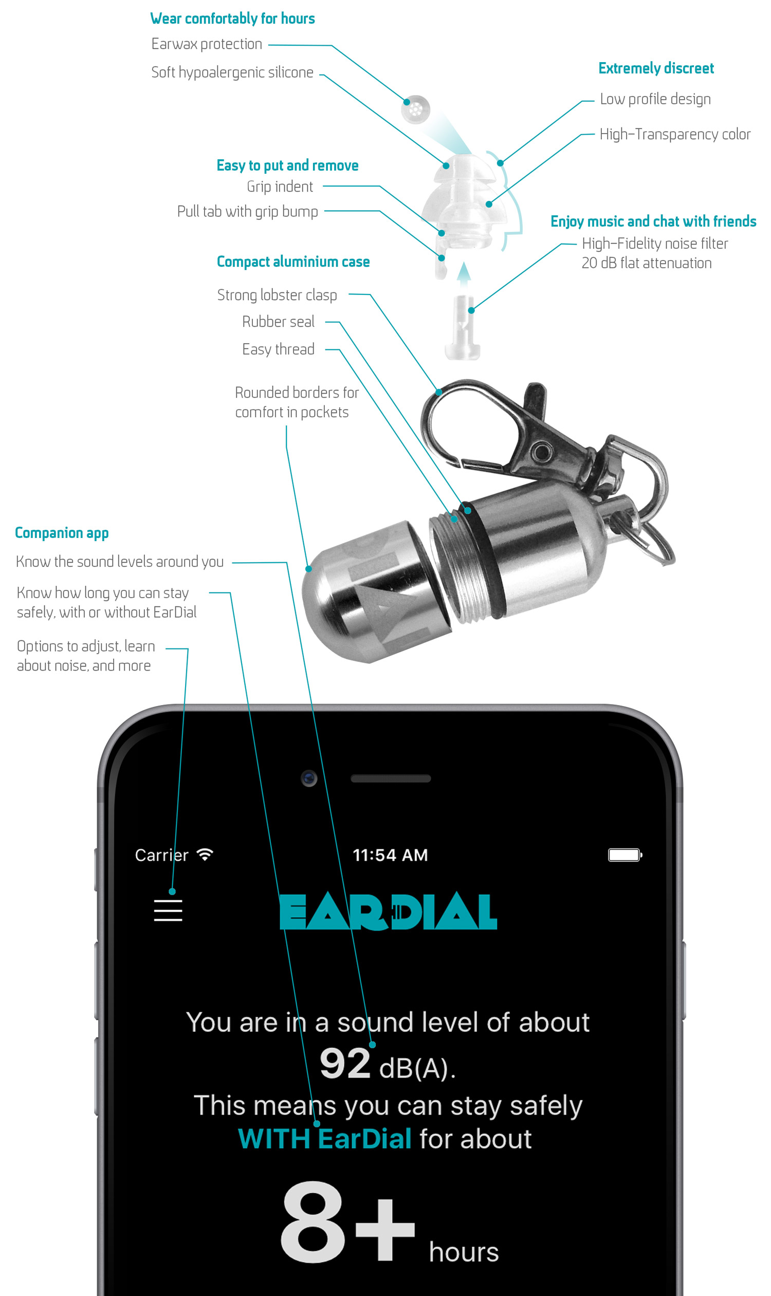 - EarDial is a comfortable and discreet hearing protection, specially designed for live music.