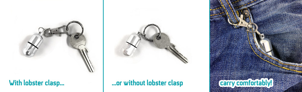 - EarDial includes a compact aluminium case with a strong lobster clasp, perfect to put in a keychain or pocket and carry comfortably at all times.